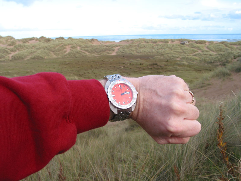 And here is Lock Ness. I was thinking of getting the Doxa wet and going for a dive......yea right. Did you not know that the Lock Ness Monster just loves bright orange!!!!