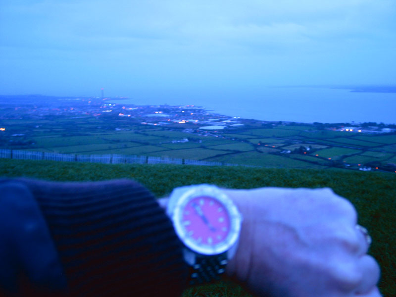 I took this shot up beside the Knockagh monument. It was dusk but you can just make out Carrick in the distance and Belfast Lough. Greenisland sits below the monument and is where I grew up. Of course when I was a kid, there were only a few houses and nothing but fields.