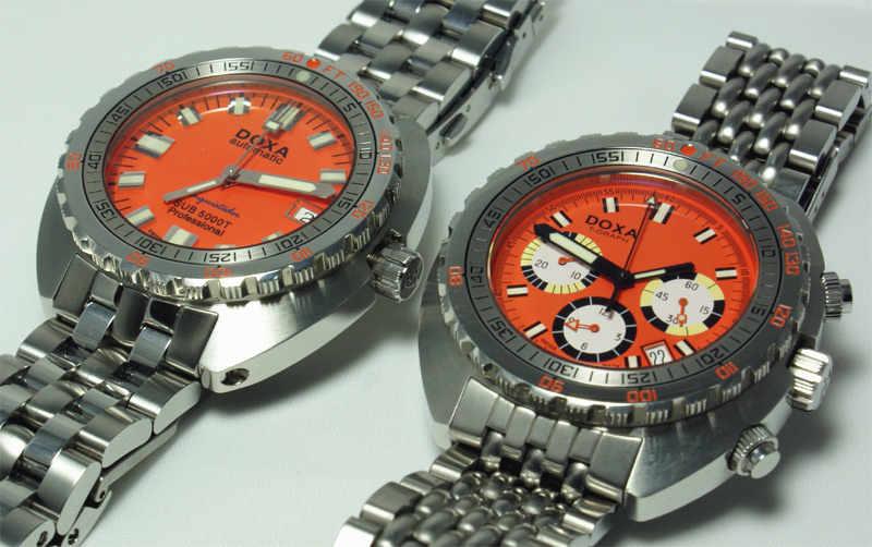 Before continuing with this review, it must be noted that the production version of the orange dial SUB 5000T is called the Seaconqueror. The watch shown in this review is a prototype and is designated Conquistador. Initially Doxa planned to call the watch the Conquistador in homage to the original HRV equipped SUB 300T, however, some other watch brand registered and copyrighted the name Conquistador, that was originally owned and used by DOXA, hence it was unavailable for use on the new 5000T, so as a homage to the orginal Spanish name, DOXA gave the new SUB 5000T, the name SeaConqueror.