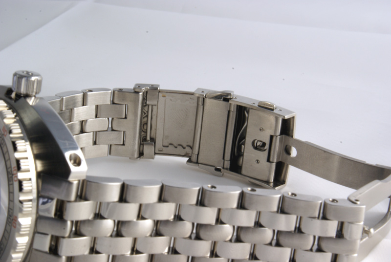 Not only are the bracelet links held together with screws but the bracelet is attached to the watch head by screws. From an engineering point of view it is debatable whether screwed links are any more secure than the pin and collar or even split pin designs but they certainly give the impression of higher quality.