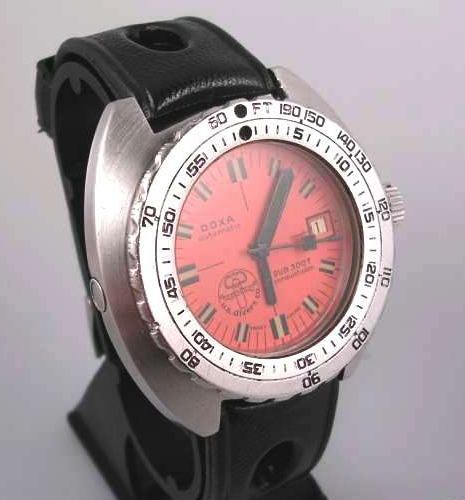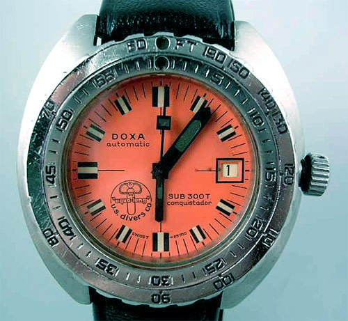 Finally, the orange face DOXA SUB, the first dedicated sports diver watch was born and was presented to public at the Basel show in spring 1966 (the above photo is (c) 1969 Neue Uhrmacher-Zeitung Ulm).