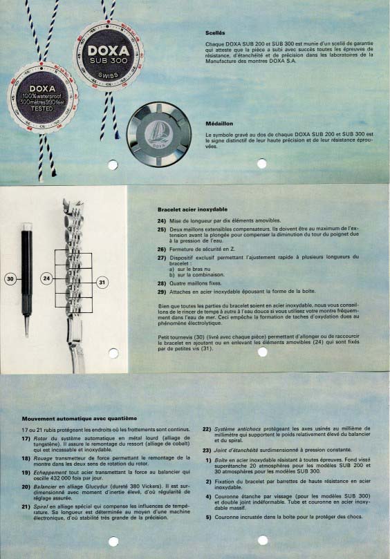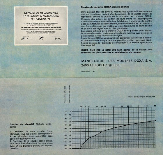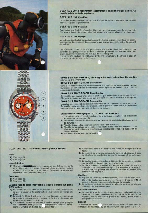 Rick Marei sent me an old Doxa manual from the 1960's. It is in French and was sent out with all the SUB models produced at that time.