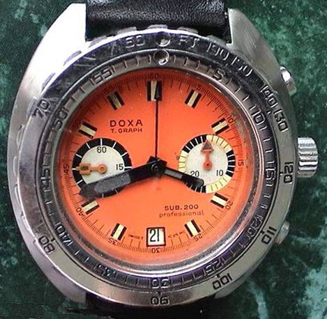 So that was my position. I knew that given my somewhat impecunious, student circumstances for the next 18 months, the chance of owning a 200 T.Graph Chrono were slim indeed, so I ordered an orange Poljot from Frank Spar at Russian Souvenirs. Delivery took less than 3 weeks and I recommend Frank highly as someone to do business with. Now before I start this comparison review, I need to make a few things clear. I don't actually own a 200 T.Graph Chrono. I have a fair amount of information on them and a load of photos, so this review is a little bit virtual, however, hopefully people will enjoy the exercise. Another thing is that it was really difficult to get the orange colour of the Poljot to photograph correctly. The images tended to be a bit more yellow than the watch dial is in real life. I am also indebted to David Harwell, Michael Fall, Pete Gardella and a few other nameless individuals for the use of their photos and information on the Doxa.