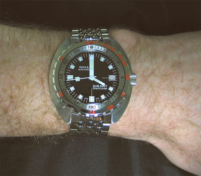 As the 600T Sharkhunter is exactly the same watch as the 600T Professional the exact same comments about fit finish and wearability apply. However, there is something about the black and white contrast of the Sharkhunter dial that really makes it stand out. I have to admit that I have always preferred the orange dial Doxas over any other colour, but having both the Sharkhunter and Professional side by side, it really becomes very difficult to chose between them.
