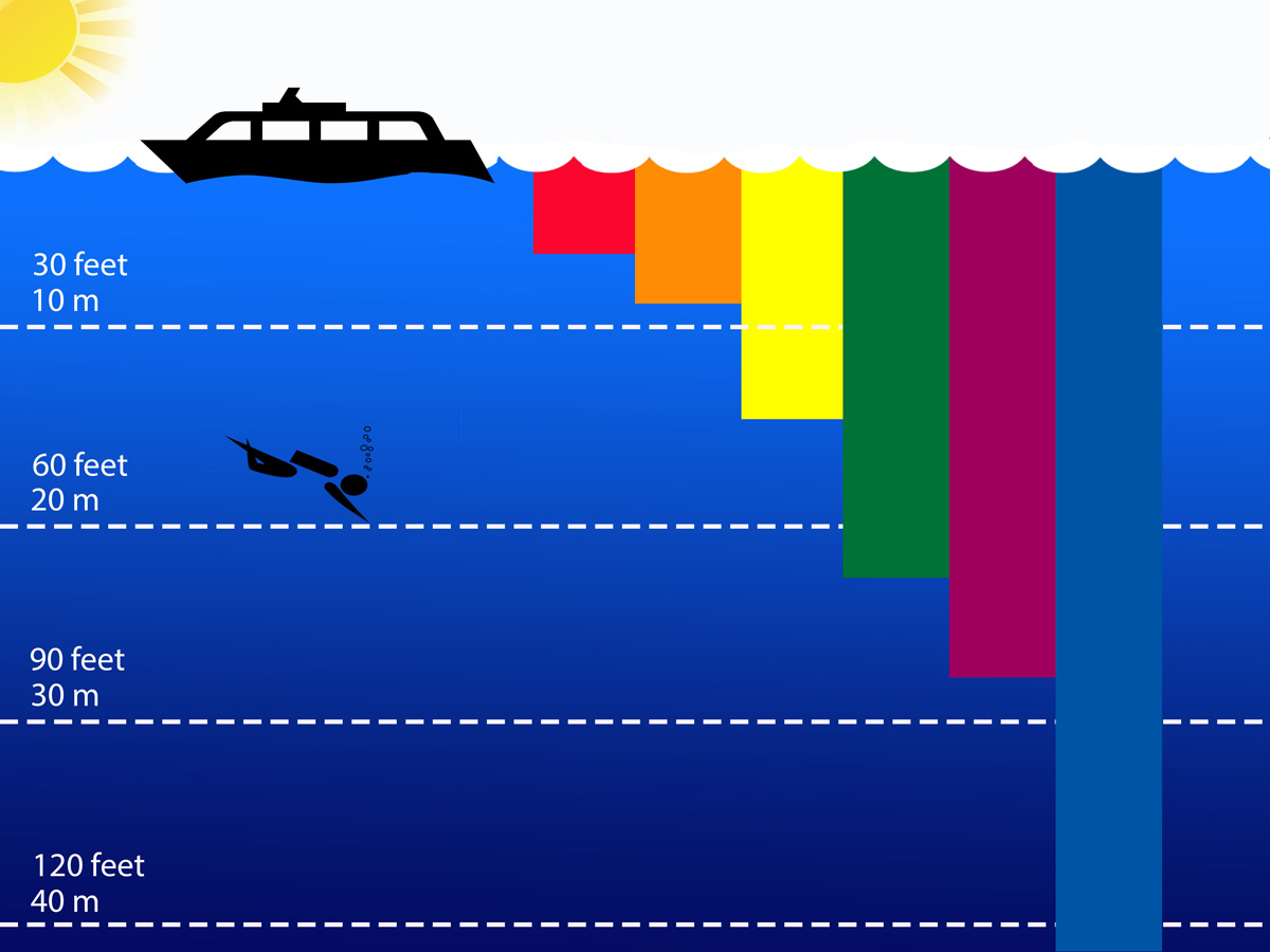 So why green? Well, the fact I'm Irish is a bit of a giveaway, but there is actually a sound diving reason for it. DOXA are famous for their orange dial. Supposedly it is the best color for color retention at depth. Well, not really. In fact green is better. This image from ScubaDiveLife tells the real story. As you can see, as we descend, we lose the colors of the spectrum as they are absorbed by the water. Orange is gone even before we pass 30 feet (10 Meters). And if you really want to be pedantic about it, color is inconsequential, it is about contrast. Black dial and large white hands win every time.