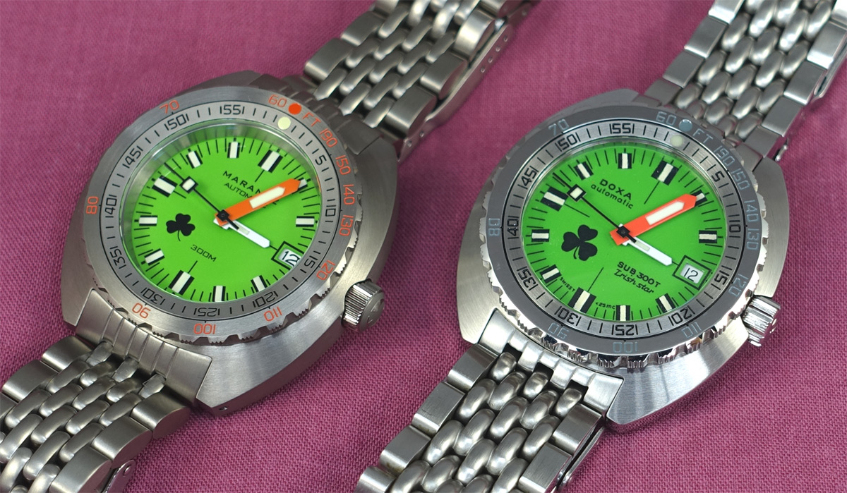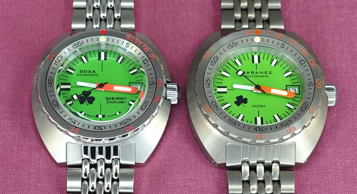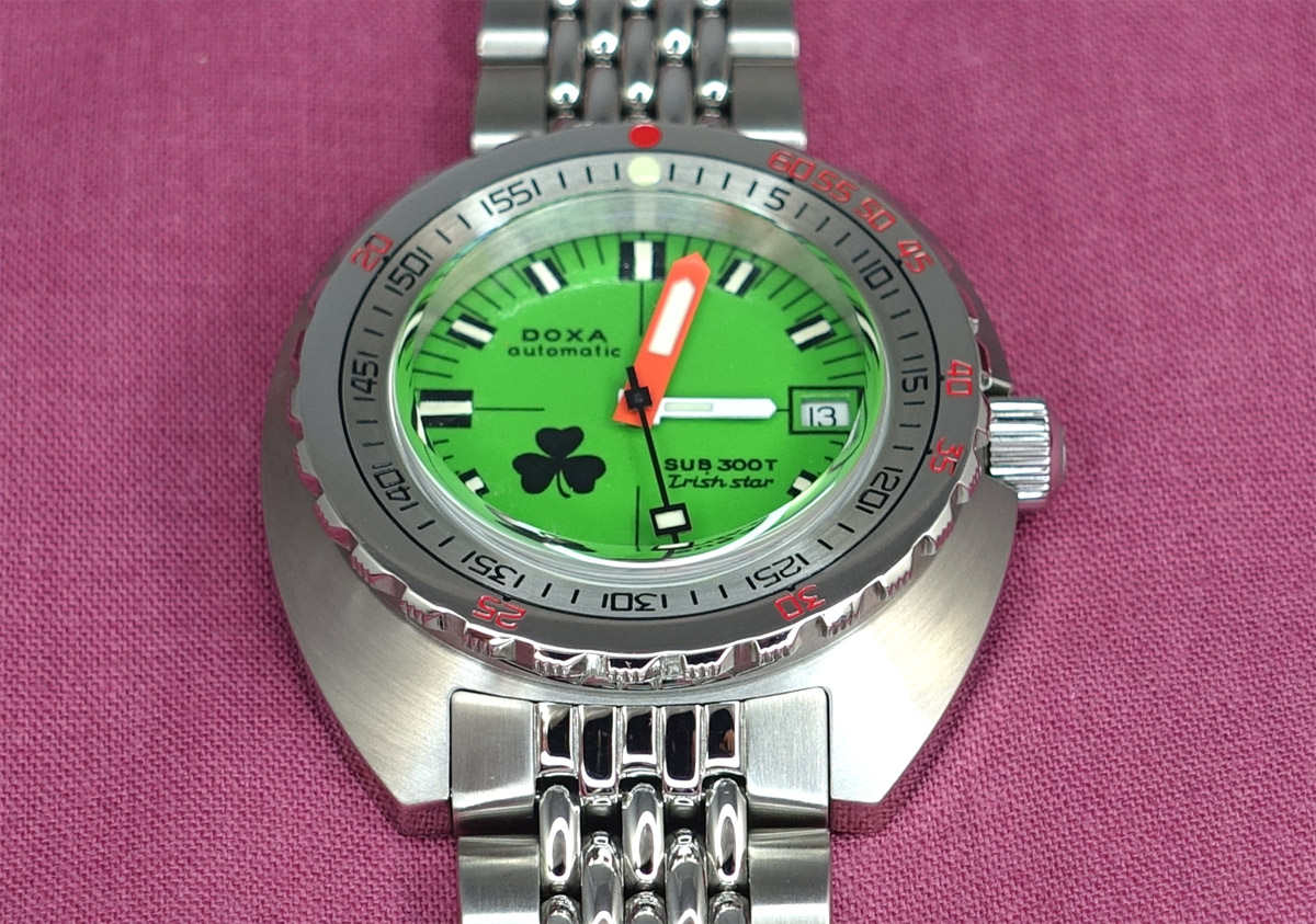 Here's the thing about the DOXA Irishstar. It is and isn't a DOXA. In the image above, the Irishstar is almost 100% a DOXA. Everything was made by DOXA except the paint on the dial. The Dial is an original DOXA dial which I had repainted. I had hoped that DOXA would make a green dial SUB but sadly it never happened. Not sure why, because as of mid 2022, they have made dials of just about every other colour except green.