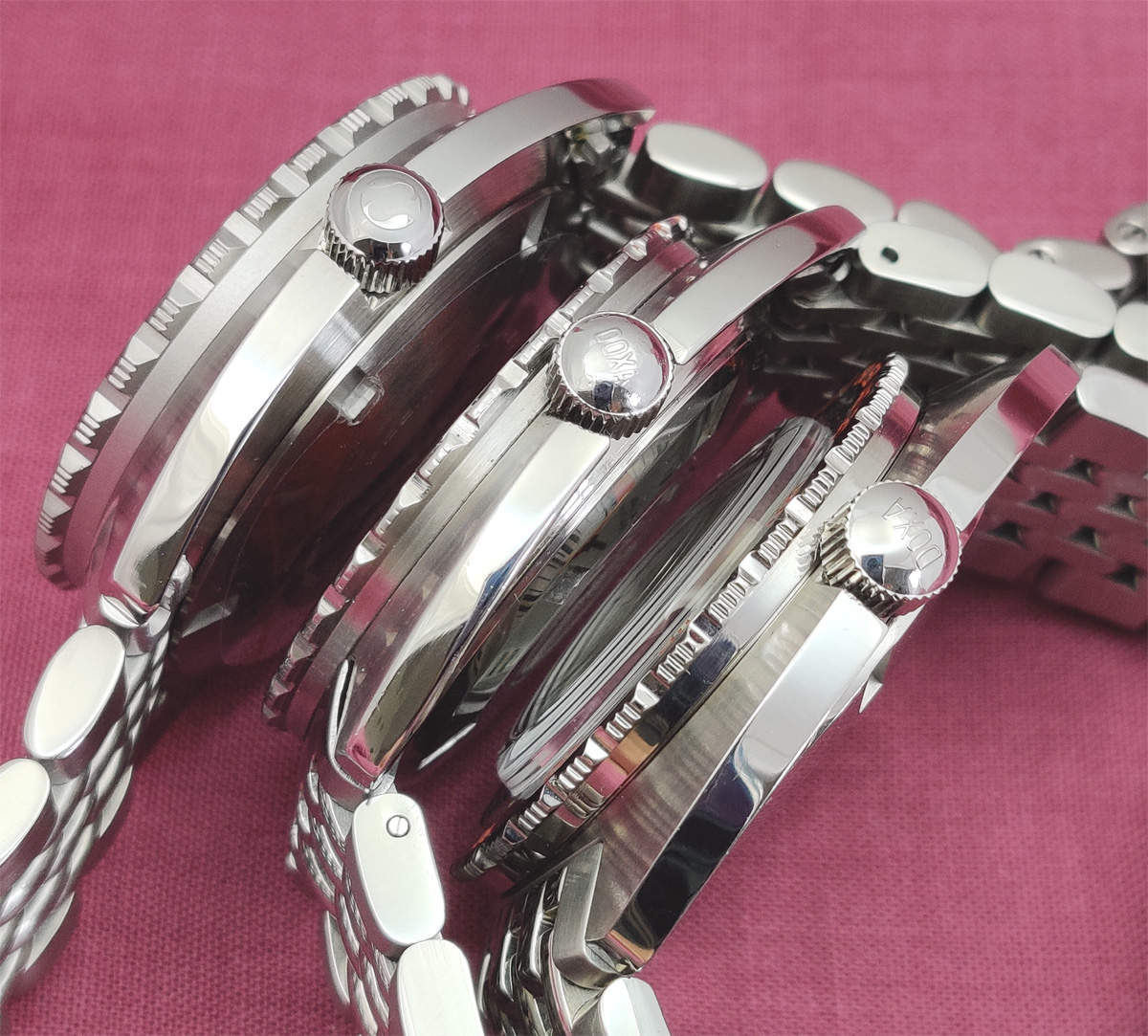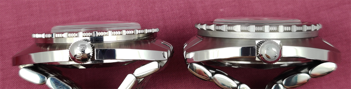 There are subtle differences in the two cases that at first are not noticeable. Take the crown cutouts, for example. Although the crowns are similar in size the case cutout on the Samui has parallel sides, the cutout on the SUB 300 tapers outwards. The crown tubes are also different sizes so the Samui crown will not fit on the SUB 300.