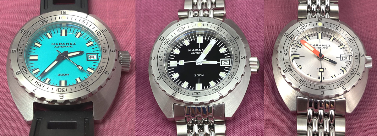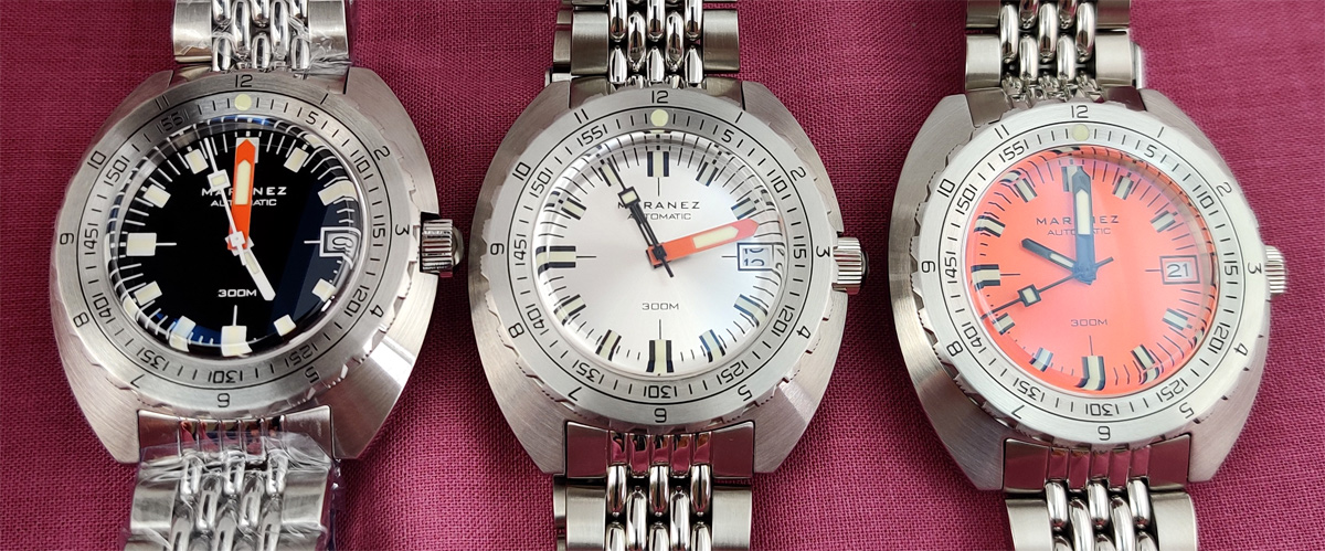 Actually, talking of Doxa becoming a a jelly bean dial colors, fashion watch, Maranez have come close to matching them on that front too. The 3rd generation Samui was initially available in 6 dial colors, including pink, with the black dial version also available with either white or orange minute hands. There are other dial colors coming.