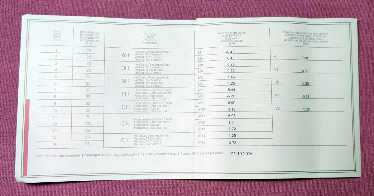 If the back of the case indicated that the two cases were different, then opening both watches shows they were similar looking from the front only. Internally they have completely different machined profiles and not surprisingly because the movements are also completely different. The SUB 300 is powered by a COSC certified 25 jewel ETA 2824-2, while the Samui runs a 24 jewel Seiko NH35A. A COSC certificate is shown below. Both of these movements are considered workhorses of the industry. The 2824 has powered almost all of the modern Marei era SUBs and up until recently the ICE era ones too. ETA has now restricted the sales of movements to anyone other than members of the Swatch group. It means that watch manufacturers are having to seek alternative movements and it is expected that in the future we will see Sellita and Soprod used in Doxa SUBs. The Seiko NH35A is an extremely reliable and also inexpensive movement. I've always considered NH35 movements as unservicable. That doesn't mean that they are unable to be serviced, it means that as I can buy a new one for around $40, why would I service the old one, I just toss it in the bin and get another and install it. A competent watch maker could swap one out in less than 20 minutes.