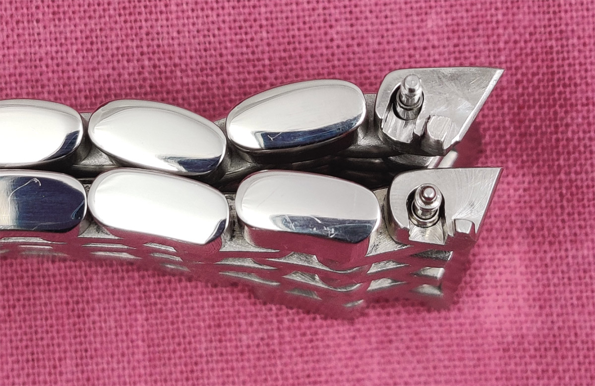The Maranez bracelet has one distinct advantage over the SUB 300 bracelet and it is that the beads really are a symmetrical bead compared to the flat bottomed Doxa bracelet and the underside profile is brushed. This means that you can turn the bracelet over and wear it with the brushed profile upwards which matches the brushing on the case and bezel.