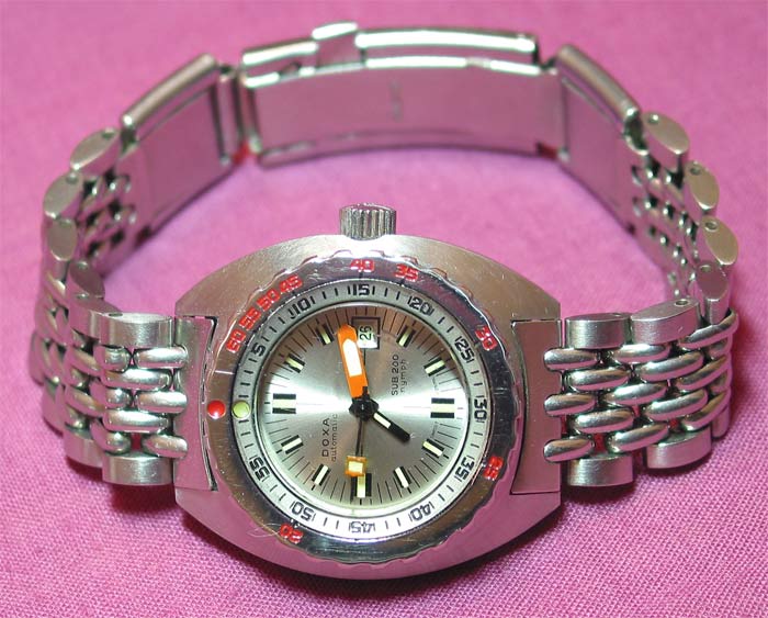 Interestingly enough the bracelet on the Nymph is the same as that on the Searambler except for the endpieces and the last few links on the 300T which flare out to meet the wider lug width. In fact the Nymph bracelet has 'DOXA SUB 300' stamped onto the clasp.