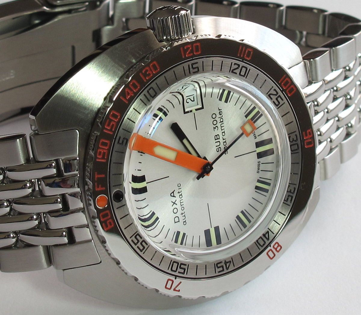 The crown also retains the original DOXA lettering from the vintage SUB 300.